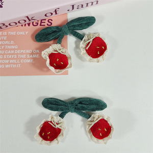 新しいスタイルの女の子用ファブリックレトロチェリーヘアピン、かわいいイチゴ、かわいいリボン、カモノハシクリップ、サイドクリップ、アクセサリー