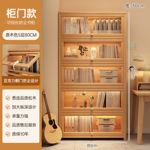 【防塵無塗装パイン材+アクリルキャビネット扉+引き出し】ログカラー、5層、80x30x160CM