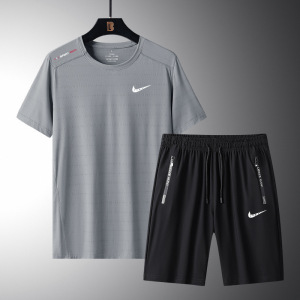 メンズ 2025 夏新作 軽くて涼しく通気性の良いメンズ カジュアル スポーツ Tシャツ/ショーツ 2 点セット メンズ
