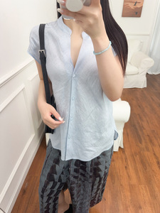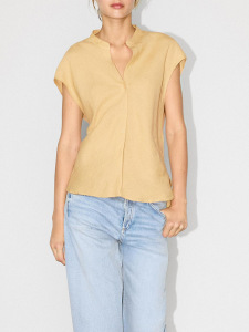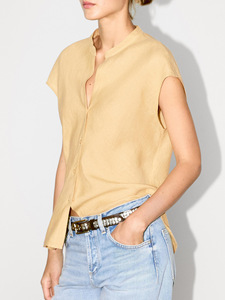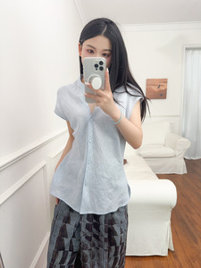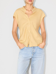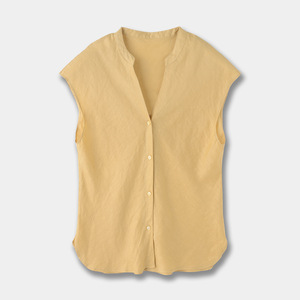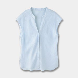 MD25 レディース ミニマリスト オールドマネースタイル 通勤スタイル ピュアリネン Vネック ノースリーブ シャツ トップス 05162543806
