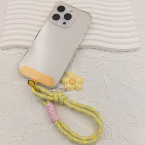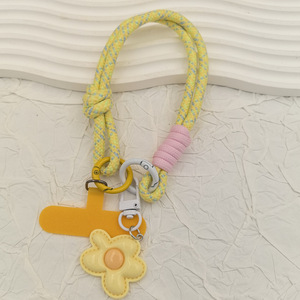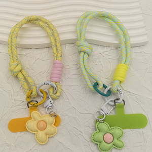 トレンディなコントラストカラーの花の携帯電話ストラップ携帯電話ケースペンダント手編みロープ強くて耐久性のあるリストロープショート携帯電話チェーン