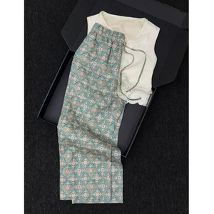 2025年超人気夏服、プリントワイドレッグパンツと美しいツーピーススーツのセット、女性用