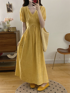 ティーブレイクフレンチVネックジャカードドレス女性用夏大きいサイズ太った女の子優しい気質超見栄えの良いウエストスカート