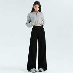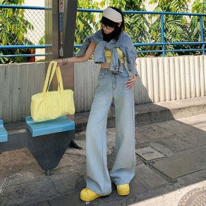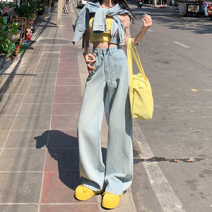 送料無料実物人気モデル|初春新作カジュアルワイドレッグジーンズレディースウォッシュドハイウエストスリムストレートレッグフロアレングスパンツ