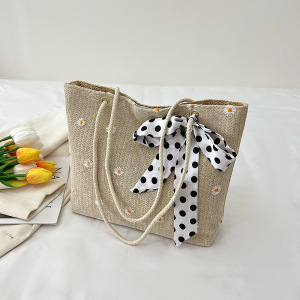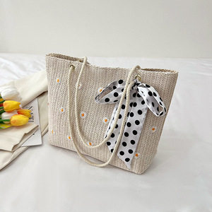 2025 ファッションニッチ牧歌的なスタイルの織バッグ大容量ショルダーバッグホリデースタイルわら織り小さな花マルチトートバッグ