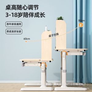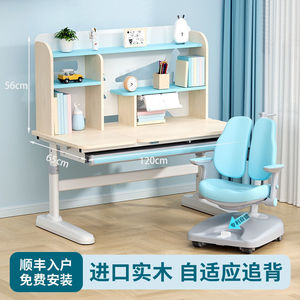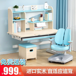 儿童学习桌中小学生书桌可升降写字桌椅套装家用实木课桌自动追背