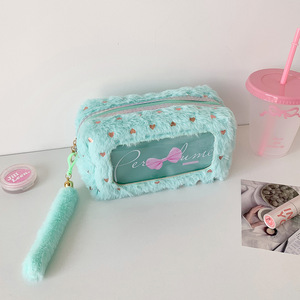 ins シンプルなホットシルバーぬいぐるみ化粧品袋高価値リボン透明文具収納袋学生ポータブル鉛筆バッグ