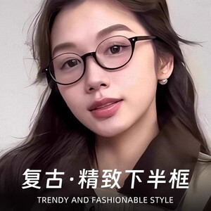 日本製レトロ下半縁メガネ女性用文学ネット有名人べっ甲カラーオタクメガネ超軽量小枠近視メガネ