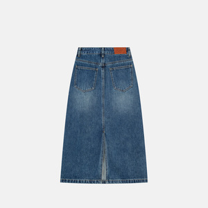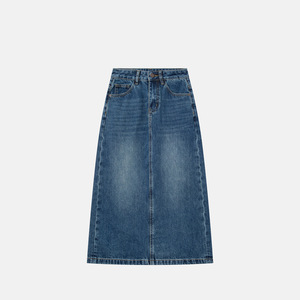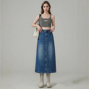 ダークブルーリアスリットデニムスカート女性のための 2025 夏ハイウエストスリム A ラインファッション非弾性ミッドレングススカート