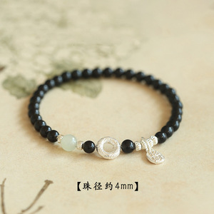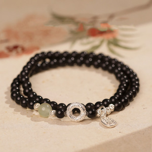 4mm【和天翡翠モデル】天然黒曜石安全バックル二重丸ブレスレット