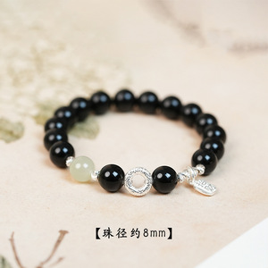8mm 【和天翡翠モデル】天然黒曜石安全バックル二重丸ブレスレット