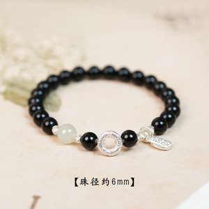 6mm【和天翡翠モデル】天然黒曜石安全バックル二重丸ブレスレット