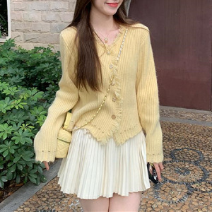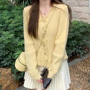 韓国の新しいスタイルのVネックタッセル活力ガール2025春と秋の優しいニットカーディガン女性用多用途セーター