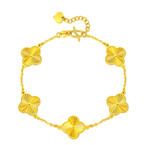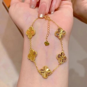 中古金色拉丝镂空四叶草手链复古高级感轻奢时尚百搭手腕配饰礼物