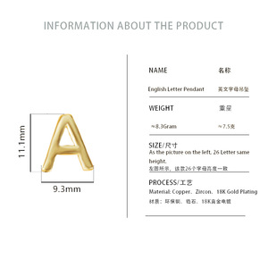 Cuicai ホットセール 18K ゴールデン光沢のある多用途クラシック 26 DIY 英語名小文字ネックレスペンダント付き