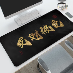 幸運を呼ぶクリエイティブな文字入りマウスパッド、財神、黒と金色、特大サイズ、オフィスコンピューターキーボード用リストレスト付きデスクパッド、中国風