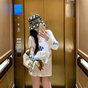 純綿春と秋のトレンディなブランドデザインの長袖レディースルーズカジュアルトレンディなブランドミッドレングス多用途パーソナライズされた女性用ラウンドネックトップ