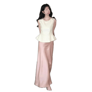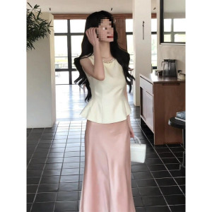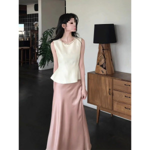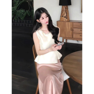 X1Q法式轻奢气质套装女夏季重工钉珠无袖背心上衣半身裙两件套高