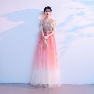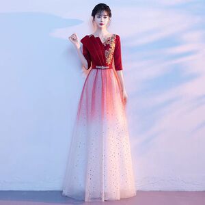 コーラスパフォーマンス服新しい大人の赤い歌コンクールイブニングドレス中高年コーラスパフォーマンス服高級学生