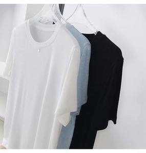 軽くて通気性が高く、柔らかくワックス状のリヨセルテンセルTシャツ、涼しく、ゆったり、カジュアル、多用途、女性用のホワイトラウンドネックマスクトップ