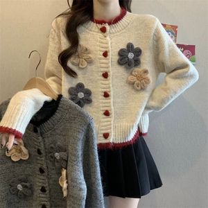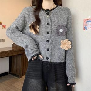 フレンチスタイルフラワーラウンドネックセータージャケット女性のための秋と冬の新しいスタイル怠惰なスタイルショートニットカーディガントレンディ