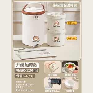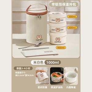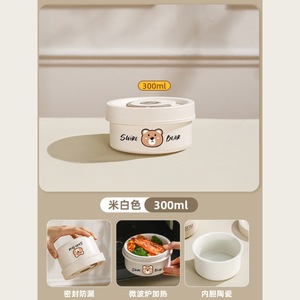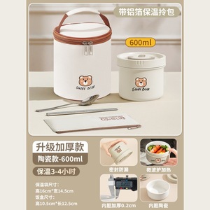 セラミックライナー断熱ランチボックスサラリーマン朝食お粥カップ蓋付き電子レンジ対応2025新しいミニボウル