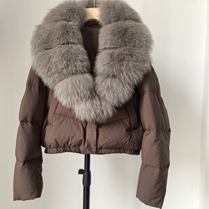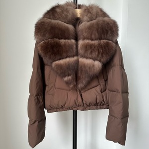 コーヒー+イミテーションミンク(ホワイトダックダウン)リアルフォックスファー襟