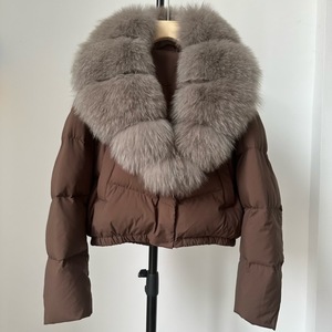 女性用のホットな冬のショートダウンジャケット、ハイエンドのファッショナブルな気質、女性用の多用途のフォックスファーの大きな襟のダウンジャケット
