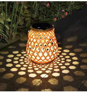 屋外ソーラー模造竹ランプ木製ランタン中庭花絵バルコニー装飾模造籐雰囲気風ランプ