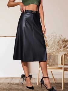 レディース PU ミディスカート スキニーフィット A ライン フレアスカート