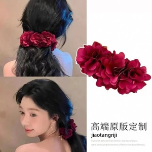 易梦玲同款红色花朵香蕉夹发夹原版大号发夹2025新款横夹马尾头饰