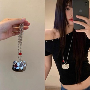 シンプルなメタルスタイルシルバーキティ猫ペンダントネックレス女性ニッチy2kパンクトレンド鎖骨チェーンセーターチェーン