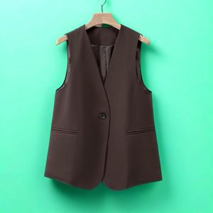 女性のためのカジュアルスーツベスト 25 新作春と秋のアウターウェア大きいサイズのベストベスト V ネックルーズファッショナブルなノースリーブスーツ