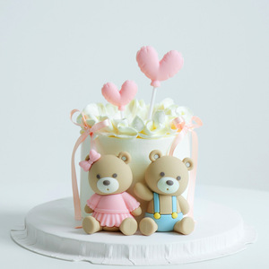 中国のバレンタインデーベーキングケーキデコレーションカップルピンクブルーベアインターネット有名人デスクトップ装飾品デザートテーブルデコレーションバレンタインデー