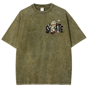 260GコットンスノーフレークコットンアメリカンTシャツレトロトレンドスタイルクロスボーダーホットスタイルルーズダメージ加工夏半袖