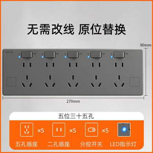 隠し設置 1 オープン 5 穴ズレグレー (10A/16A 独立スイッチ)