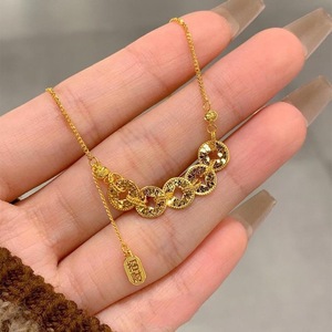 クラッシュアイスゴールデン五帝コインジュエリーネックレス女性用サンドゴールドペンダント新しい中国風古代富を引き寄せる鎖骨