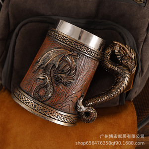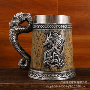クロスボーダー中世レトロビールカップ樹脂ステンレス鋼手作りバイキング蛇口マグバーホームデコレーション