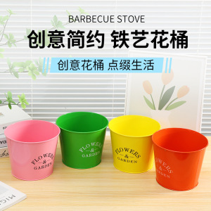 ヨーロッパの田舎の古い鉄の植木鉢、広口の鉄のバケツ、バルコニーの家庭用花のバケツ、鉄の花、フラワーショップの花の鉄のバケツ