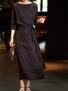 ローマの休日のラップデザインプリントドレスエレガントなVネックスリムウエストロングスカート2025夏新作