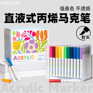 Hemu ストレート液体ソフトヘッドアクリルマーカーペン不透明色積み重ね可能な学生絵画落書きアートカラーペン