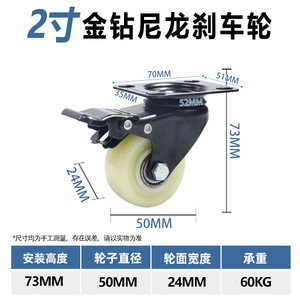 ゴールド ダイヤモンド ホワイト ナイロン フラット ボトム 2 インチ ユニバーサル ブレーキ ホイール
