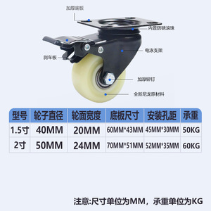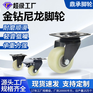 スポット直送 1.5inch 2inch 平底ゴールドダイヤモンドホワイトナイロントロリーキャスターブレーキ付きユニバーサルホイール付きリニアローラー