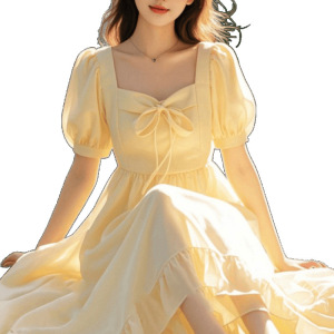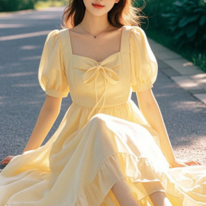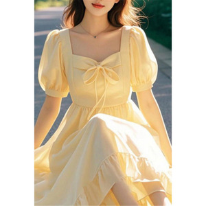 ティーブレイクスカートフレンチイエローパフスリーブドレスサマードレス女性のための 2025 新しいフォレストスタイルかわいいプリンセスドレス