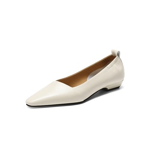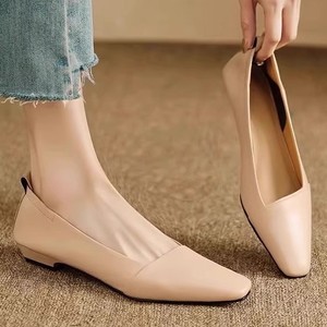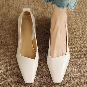 足が疲れにくい女性用ソフトシープスキンホワイトシューズ2025新作スクエアトゥ浅口フレンチレトロ気質フラットスモールレザーシューズ