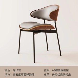 意式轻奢餐椅极简设计师办公椅咖啡厅洽谈区曲木板中古风实木椅子