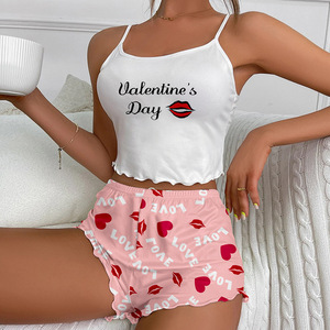 外国貿易女性のノースリーブカラフルなフランスのセクシーな女の子のホーム服セクシーなサスペンダーショーツパジャマセット女性の夏薄い