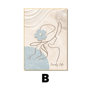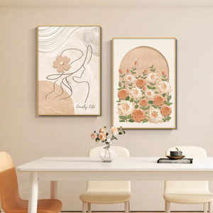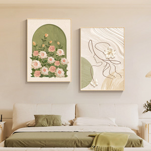 奶油风主卧室床头装饰画现代简约玫瑰抽象人物壁画原木风餐厅挂画