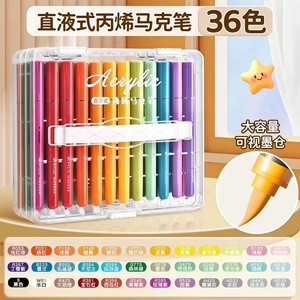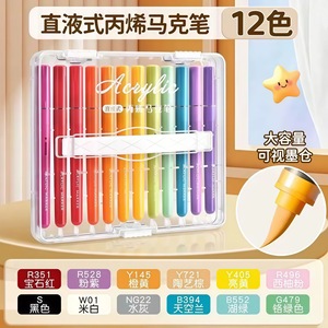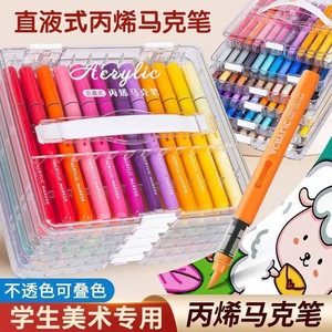 カラーストレート液体アクリルマーカーペンソフトヘッドカラー学生アート特別な積み重ね可能なカラー子供用水彩ペン絵画ブラシ