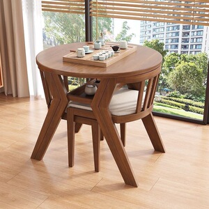 バルコニーレジャーテーブルと椅子の3点セット無垢材ティーテーブル1台、小さな家庭用2脚組み合わせラウンドテーブル、ティーテーブル